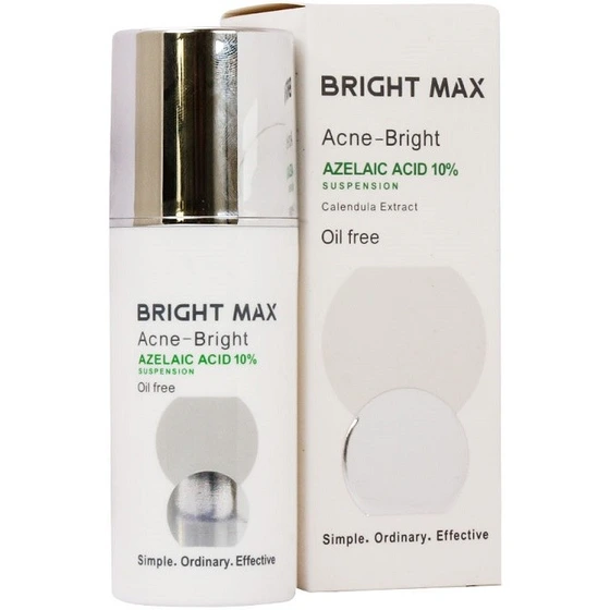 سوسپانسیون آکنه برایت آزلائیک اسید10% برایت مکس با حجم ۳۰میلیلیتر، حاوی ۱۰٪ آزلائیک اسید و عصاره کالاندولا عملکرد چندگانه برای بهبود آکنه و لک دارد. آزلائیک اسید ترکیبی بسیار موثر برای تنظیم ترشح چربی پوست، درمان آکنه، رفع لک های حاصل از آکنه و نیز روشن کنندگی پوست است. استفاده از آزلائیک اسید و عصاره کالاندولا به عنوان ترکیبات با خاصیت ضد التهاب قوی باعث شده است این محصول برای درمان آکنه پوست های حساس جایگزین ایده آلی باشد.
