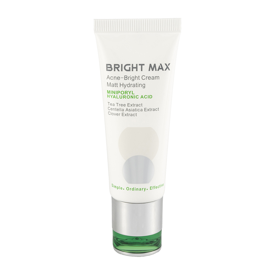 کرم مرطوب کننده مات آکنه برایت برایت مکس با حجم ۴۰ میلیلیتر، آبرسانی با بافت سبک و بدون چربی است که برای پوستهای چرب، مختلط و مستعد آکنه مناسب است. این کرم آبرسان، ترشح چربی پوست را نیز کنترل میکند و از براقیت پوست جلوگیری میکند تا ظاهری مات و طبیعی داشته باشیم. علاوه بر آن، منافذ باز را کوچکتر کرده و ظاهری یکدست به پوست میدهد. این کرم با دارا بودن روغن درخت چای، دارای تاثیرات ضد باکتری و ضد التهابی است تا از بروز جوش و آکنه جلوگیری شود. کرم مرطوب کننده مات آکنه برایت برایت مکس حاوی عصاره شیرین بیان و درماوایت نیز هست که به روشن شدن و رفع تیرگی و لکهای باقی مانده از جای جوش نیز کمک میکند.