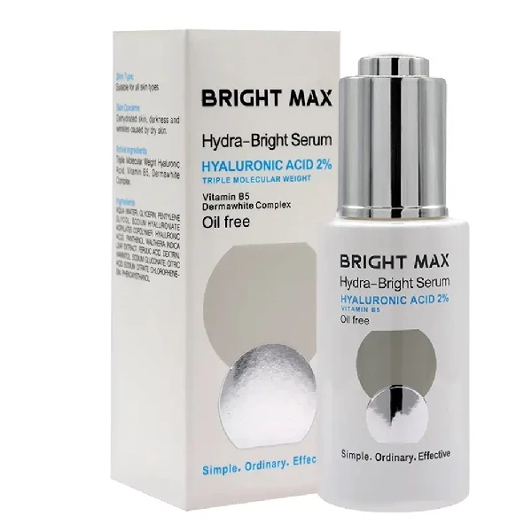 سرم هیالورونیک اسید هیدرابرایت برایت مکس با حجم ۳۰ میلیلیتر، یک آبرسان قوی است که منجر به تقویت لایه محافظ و سد دفاعی پوست میشود. این محصول حاوی ۲٪ هیالورونیک اسید با وزنهای مولکولی ۳ گانه است تا بتواند به لایههای مختلف پوست نفوذ کرده و به صورت عمقی پوست را آبرسانی کند. در کنار آن، ویتامین B5 و درماوایت نیز در این سرم آبرسان به کار رفته که منجر به تغذیه بیشتر پوست و روشن شدن آن میشود.