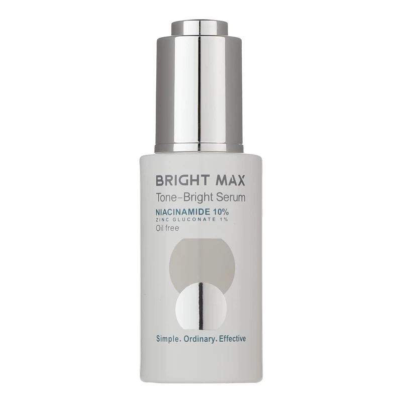 سرم نیاسینامید تن برایت برایت مکس با حجم ۳۰ میلیلیتر، حاوی ۱۰٪ نیاسینامید و ۱٪ زینک گلوکونات است که به صورت تخصصی منجر به رفع لک و یکدست شدن پوست منجر میشود. ترکیبات به کار رفته در این محصول، رنگ پوست را یکدست کرده و با کنترل ترشح ملانین، از بروز لکهای جدید نیز جلوگیری میکند تا پوستی یکدست و بدون لک داشته باشیم. این سرم تیرگیها لکها را کاهش میدهد و به مرور پوست را یکدست میکند.