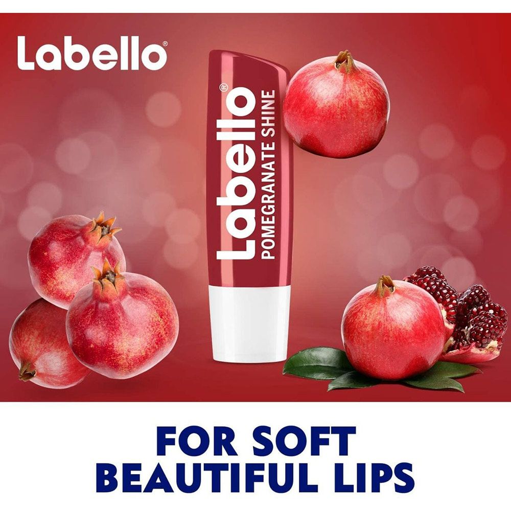 بالم لب مرطوب کننده انار لبلو (Labello Pomegranate Shine 24h Moisture Lip Balm)، لبهای شما را به مدت 24 ساعت مرطوب نگه می دارد و رایحه خوش طعم انار را به آن میبخشد. فرمول ارتقا یافته بالم لب لبلو حاوی شی باتر و روغنهای طبیعی گیاهی است و از 99 درصد مواد با منشاء طبیعی ساخته شده است. بالم لب مرطوب کننده انار لبلو از نظر بالینی به آزمایش رسیده و سازگاری آن با پوست لب تایید شده است. فاقد روغنهای معدنی است و دارای ویتامین E و C برای تعذیه پوست لب میباشد.