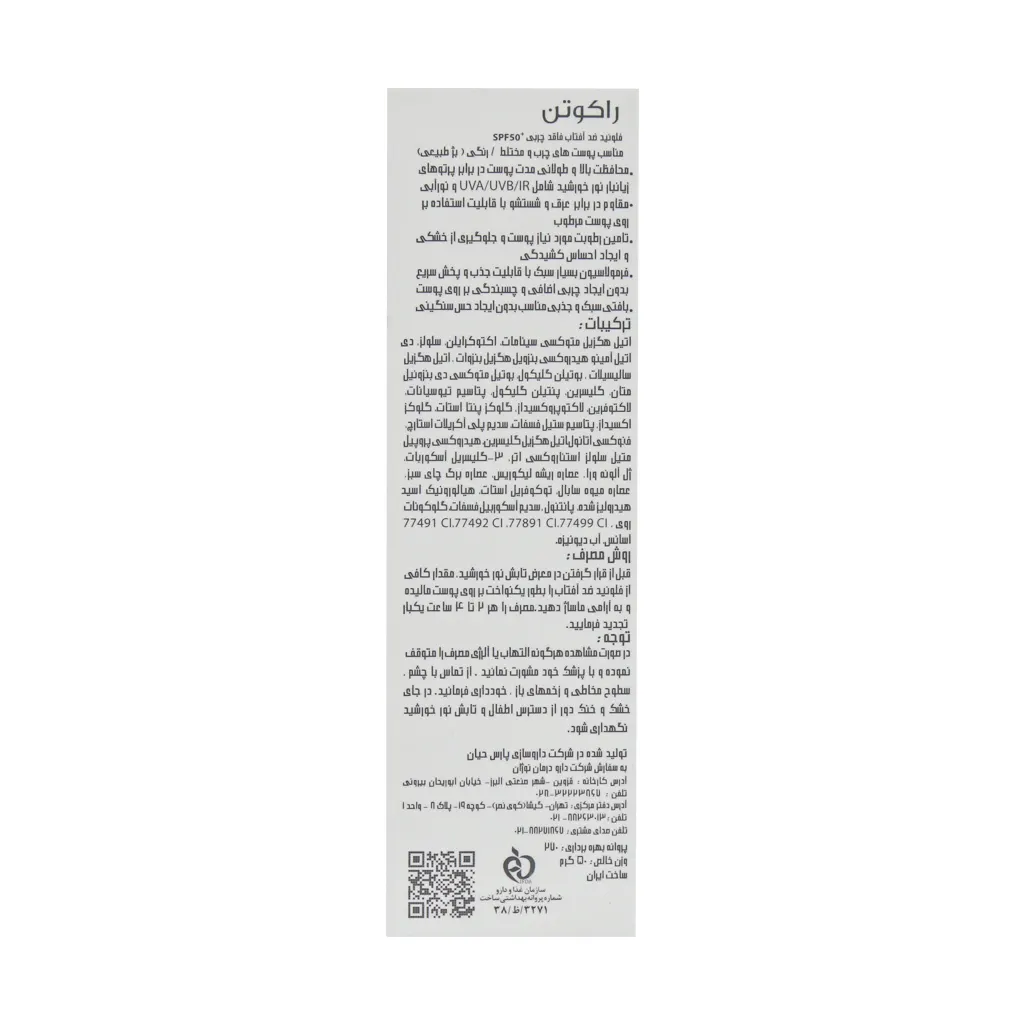 فلوئید ضد آفتاب رنگی SPF 50 راکوتن بدون چربی ۵۰گرم