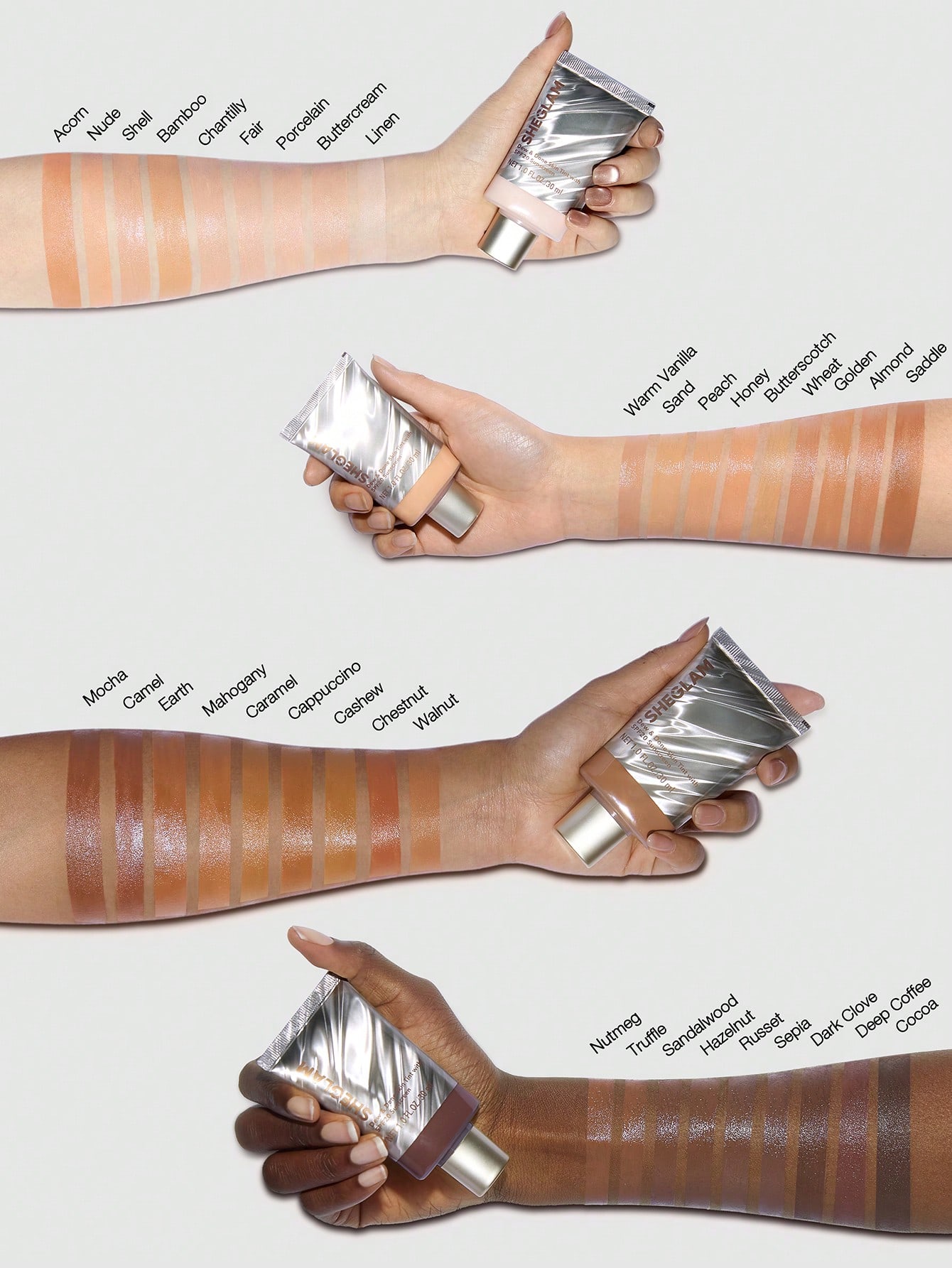 تینت صورت SPF20 شیگلم با حجم ۳۰ میلیلیتر، یک اسکینتینت سبک و آبرسان است که همزمان نقش کرم رنگی روزانه و محافظت SPF 20 را برای آرایشهای سریع و طبیعی بازی میکند. بافت آن مایع لطیف و قابلپخش است و خیلی راحت با انگشت، براش یا اسفنج روی پوست مینشیند، بدون اینکه حس سنگینی یا ماسیدگی ایجاد کند. فینیش نهایی این محصول پوست را شاداب، چربی پوست کنترل شده و سالم نشان میدهد و برای میکاپهای no-makeup makeup عالی است.